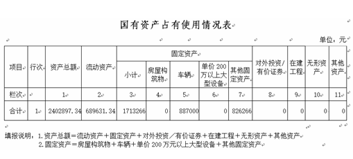 截至2018年12月31日,曲靖市罗平县人民代表大会常务委员会部门资产总额2,402,897.34元,其中,流动资产689,631.34元,固定资产1,713,266元,对外投资及有价证券0元,在建工程0元,无形资产0元,其他资产0元(具体内容详见附表)。与上年相比,本年资产总额增加291,021.3元,其中;流动资产增加178,381.3元,固定资产增加112,640元,对外投资及有价证券增加0元,在建工程增加0元,无形资产增加0元,其他资产增加0元。处置房屋建筑物0平方米,账面原值0元;处置车辆0辆,账面原值0元;报废报损资产0项,账面原值0元,实现资产处置收入0元;出租房屋0平方米,账面原值0元,实现资产使用收入0元。