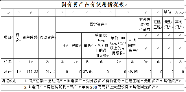 截至2018年12月31日,曲靖市罗平县发展和改革局部门资产总额179.33万元,其中,流动资产91.44万元,固定资产87.89万元,对外投资及有价证券0万元,在建工程0万元,无形资产0万元,其他资产0万元(具体内容详见附表)。与上年相比,本年资产总额减少1,652.7万元,其中;流动资产减少1,640.05万元,固定资产减少12.65万元,对外投资及有价证券增加0万元,在建工程增加0万元,无形资产增加0万元,其他资产增加0万元。处置房屋建筑物0平方米,账面原值0元;处置车辆0辆,账面原值0万元;报废报损资产13项,账面原值1.374万元,实现资产处置收入1.374万元;出租房屋0平方米,账面原值0万元,实现资产使用收入0万元。