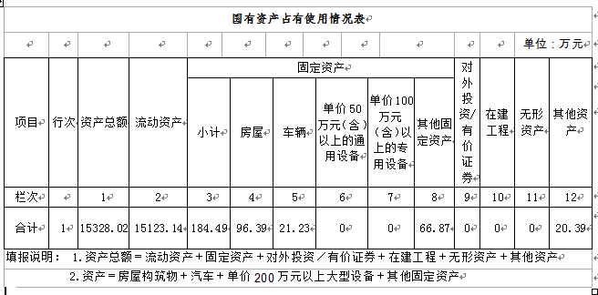 截至2018年12月31日,曲靖市罗平县招商合作局部门资产总额153,280,261.38元,其中,流动资产151,231,415.51元,固定资产1,844,899.35元,对外投资及有价证券0元,在建工程0元,无形资产203,946.52元,其他资产0元(具体内容详见附表)。与上年相比,本年资产总额减少17,952,289.26元,其中;流动资产减少18,417,089.26元,固定资产增加260,853.48元,对外投资及有价证券增加0元,在建工程增加0元,无形资产增加203,946.52元,其他资产增加0元。处置房屋建筑物0平方米,账面原值0元;处置车辆0辆,账面原值0元;报废报损资产0项,账面原值0元,实现资产处置收入0元;出租房屋0平方米,账面原值0元,实现资产使用收入0元。