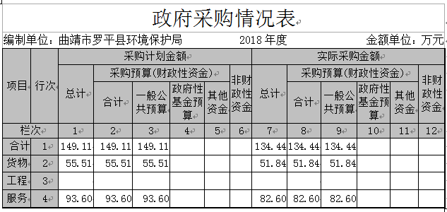 2018年度,部门政府采购支出总额134.44万元,其中:政府采购货物支出51.84万元,用于购买办公电脑、桌椅、监测仪器、执法设备等;政府采购工程支出0万元;政府采购服务支出82.6万元,用于购买大气自动监测站运行管理服务、河长制及县域生态考核监测服务、省级生态县创建方案报告等编制;授予中小企业合同金额0万元,占政府采购支出总额的0%。