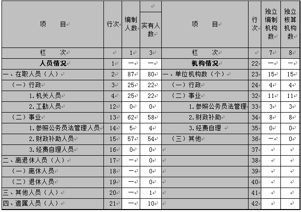 曲靖市罗平县鲁布革布依族苗族乡部门2018年末实有人员编制87人。其中:行政编制25人(含行政工勤编制0人),事业编制62人(含参公管理事业编制5人);在职在编实有行政人员22人(含行政工勤人员0人),事业人员58人(含参公管理事业人员4人)。