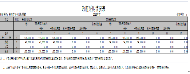 本单位2018年政府采购金额共计154699.00元,其中:货物类采购金额34699.00元。分别为椅子4把、装订机1台,价格为19400元。电脑1台,价格为8699元。文件柜2组,价格为2400元。扫描仪2台,价格为4200元。服务类采购金额120000元,为扶贫资金第三方审计咨询服务费。