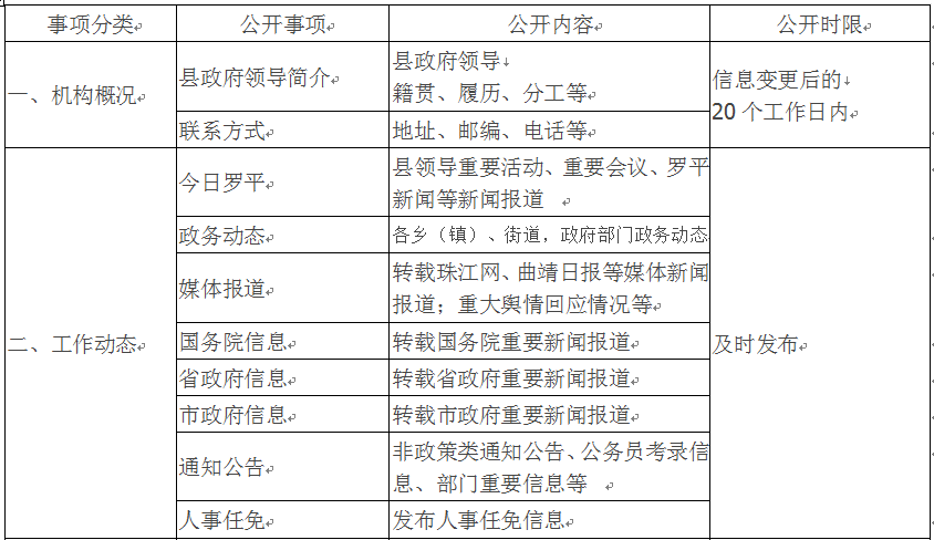 罗平县人民政府办公室政府信息公开基本目录
