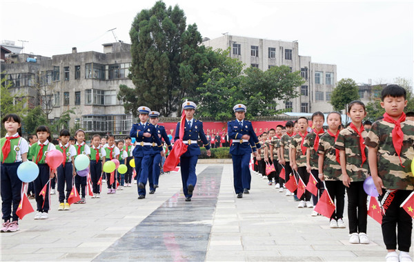 罗平:腊山街道新村小学举行“献礼中华70年 我爱你中国”主题升旗仪式