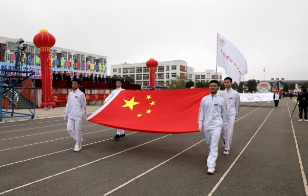 走进校园,运动场上人潮涌动,彩旗飘扬,来自全校3400余名师生聚集运动场,伴随着雄壮激越的《运动员进行曲》,喊着嘹亮的口号从主席台前走过。他们挺拔的身姿,整齐有力的步伐,多彩的运动元素如花朵般绽放,别具特色。整个开幕式有创意、有特色,独具匠心,用独特的表演迎接本次体育艺术节的到来,展现青春向上的激情和活力。