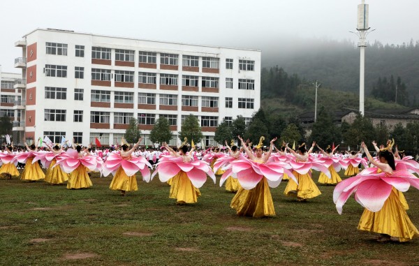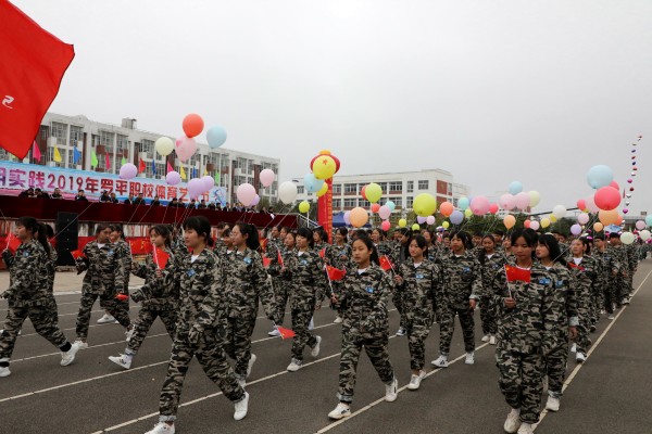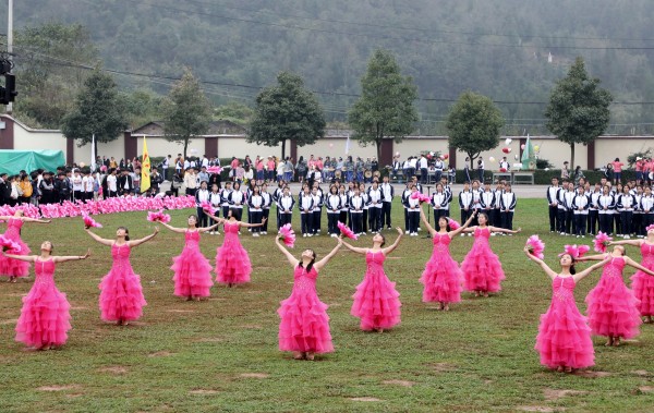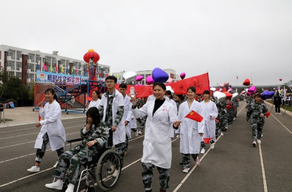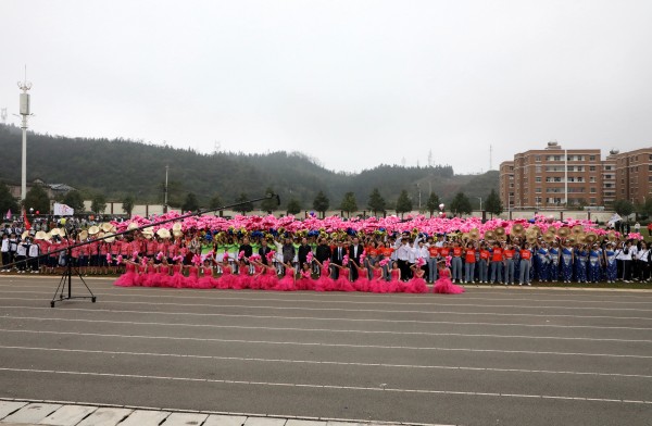 正值新中国成立70周年,全国人民喜悦的日子,罗平县职业技术学校全体师生满怀喜悦的心情,以精神饱满的姿态,欢聚一堂,隆重举办2019年体育艺术节。11月11日上午举行盛大的开幕式,共有59个方队,包括国旗、校旗、校徽、会徽、彩旗、花环、扇子、裁判员及各班级组成的学生方队。各个方队以多姿的阵势,百花齐放,尽情舞动,有序步入赛场,尽显青春无限风采。