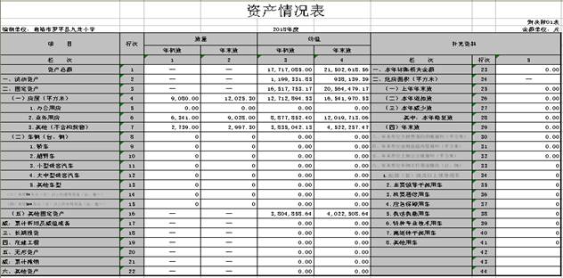 截至2018年12月31日,曲靖市罗平县九龙小学部门资产总额2,150.26万元,其中,流动资产93.81万元,固定资产2,056.45万元,年末资产总额为21,502,618.56元,比上年增加3,785,533.56 元,增长21.37%,其中:固定资产增加404.67万元, 房屋面积增加2,945.30 平方米,价值增加382.91万元。业务用房增加2,687.00 平方米,价值增加314.19万元,其他用房增加258.30 平方米,价值增加68.72万元。其它固定资产增加21.77