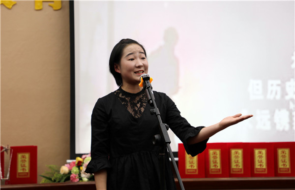 “我们作为新时代的青年,不该在这朝气蓬勃的年纪里如同行尸走肉般地活着,我们不应该在这本该努力奋斗的年纪里选择安逸……同学们,不忘初心方得始终,让我们一起努力,让青春绽放别样的光彩。”417班学生张梦琼在《浪漫冒险》的演讲上激情飞扬的讲述着。“我们是新一代的希望,我们是肩负着中华复兴的青年……我们要让中国声音不再嘶哑,我们要让世界听到中国声音,我们要让中国的声音不再被轻视。”419班喻思琪在《中国声音》的演讲中倾情呐喊着。