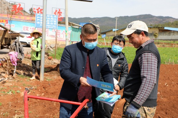 “你们要学会自我保护,在地里不聚众劳作,尽量戴口罩,这样干农活也不影响防疫工作。”春耕备耕已悄然来到,村民开始走进田间地头,翻土、施药、除草……对农田进行有效管理。驻村工作队深入田间地头开展防疫知识宣传,积极引导群众分散劳作,加强防护,力求做到防疫、春耕备耕两不误。在烤烟育苗点、在田间地块,随时有驻村人员的身影,他们是为了不能因疫情影响而耽误春耕生产这个大事,力求工作不脱节,群众安全有保障。