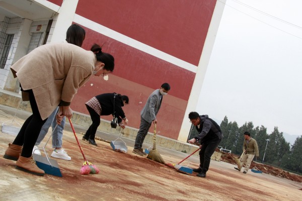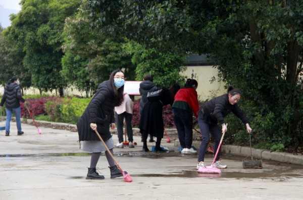学校教职员工全部返校返岗,对校园进行卫生清扫,清理枯枝败叶,对垃圾进行分类处理,及时清运。对学校全面清洁,对物体表面彻底擦洗、预防性消毒处理,对教室、宿舍开窗通风,不留死角,力促学校的人文环境更加美好,为开学做好前期准备工作。