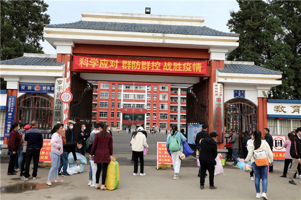 “作为高三的学生,由于疫情的原因,尽管开学推迟了一个多月,但老师们一直在线上鼓励我们学习,今天刚进到校门就看到老师们为学生进行严格的量体温、消毒,排除一切隐患后方可进入校园……我们会努力把时间找回来。”罗平县第三中学高三年级郭佳有感而发。3月23日,度过“最长寒假”,告别“云课堂”的校园里又响起了久违的铃声,罗平县初三、高三年级正式开学,沉寂的校园重新恢复往日的活力。