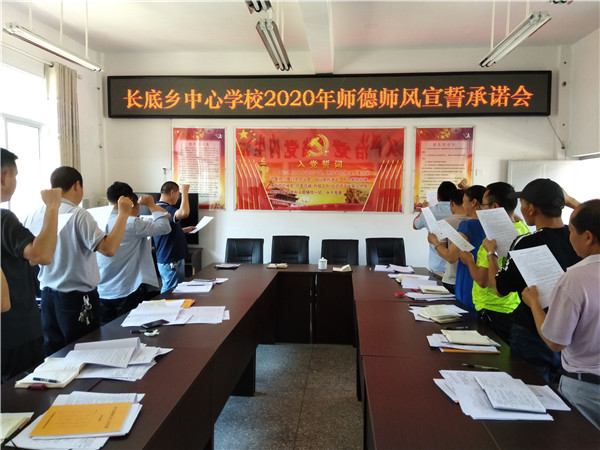 近日,罗平县长底乡中心学校在开展师德师风“建设年”活动中,组织党员干部、班子成员与普通教师进行承诺宣誓。