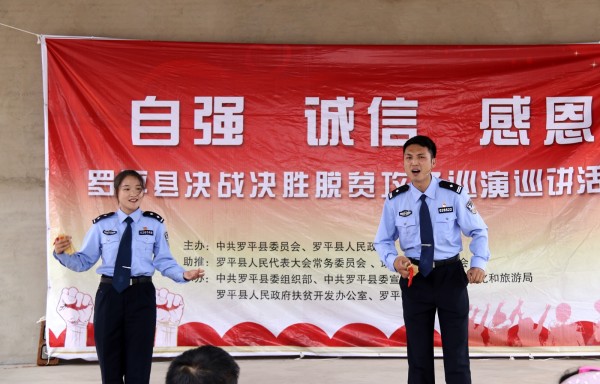 为丰富广大群众的精神文化生活,激发群众内生动力, 6月16日至17日,由中共罗平县委员会、罗平县人民政府主办的“自强 诚信 感恩”决战决胜脱贫攻坚巡演巡讲活动走进阿岗镇,并在阿岗、岗德、法郎、乐作村(居)委会举行。县委常委、县委宣传部部长杜毅静参加了此次巡演巡讲活动。