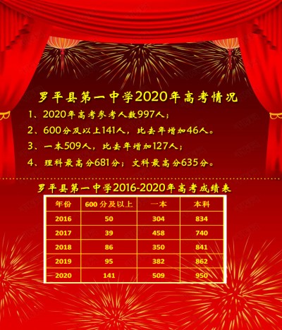 2020年,罗平县第一中学在县委、县政府的坚强领导下,在各部门及社会各界的大力支持下,全校教师努力拼搏,辛勤耕耘,真抓实干,高考成绩再创佳绩,续写辉煌。