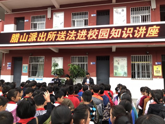 为进一步增强在校师生自我防护和抵制各类违法犯罪活动意识和能力,护卫青少年健康成长,9月25日,罗平县公安局腊山派出所社区民警来到法金甸小学,开展送法进校园活动,提升学生法律意识。