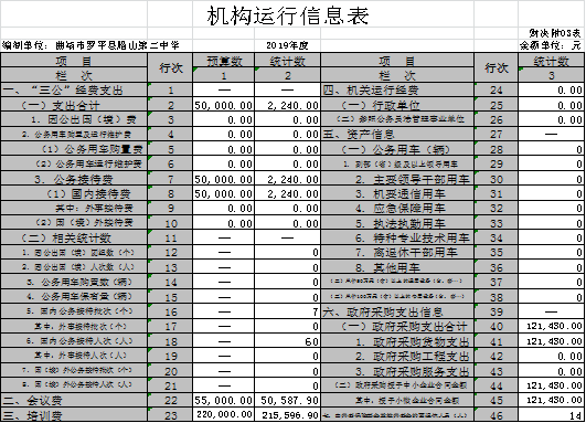 曲靖市罗平县腊山第二中学部门2019年行政事业运行经费支出2363.99万元,行政事业单位运行经费主要与基本支出中办公费、水费、电费、邮电费、差旅费、维修维护费、会议费、培训费、公务接待费、劳务费合计28.47万元,我校2018年度并入罗平县腊山中心学校决算合并上报,2019年度分离,独立上报。