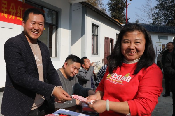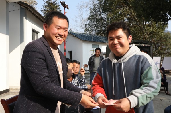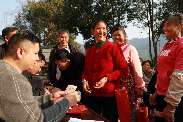 同样是来自洋洞脚村的缪小芬,领到1800的工资后,脸上堆起了灿烂的笑容。她开心地说:“马上就要过年了,今天就领到了工资,过一两天就可以和家人去添置年货了。说实话,真的非常开心!”