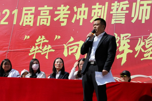 “在最后84天的时间里,我们也许对你们有更苛刻的要求,更艰苦的训练,更严厉的批评,但请同学们相信:艰难险阻我们师生共同承担;风霜雨雪我们师生同行!‘甘将心血化成雨,润出桃花一片红’是我们共同的承诺。”高三教师王燕波激情洋溢的演讲着,“同学们,奋战84天,让六月的鲜花开满我们一中的校园;奋战84天,让六月的锣鼓响彻我们一中的校园;奋战84天,让六月的高歌唱响我们一中的校园。”他勉励高三学子要全力以赴,把潜能激发达到最佳状态;摒弃杂念紧跟老师节奏,让学习达到最佳状态;平和心态,使精神达到最佳状态。“我们会陪伴你们一同走过了生命中最靓丽的青春花季,陪伴你们去迎接人生关键一战,我们一定会全程陪伴你们经历2021年高考的考验!母校一定会为你们保驾护航。请你们记住:在这场奔赴高考的征途上,你不是一个人在战斗!”戴芸老师也动情的向学生们承诺着。