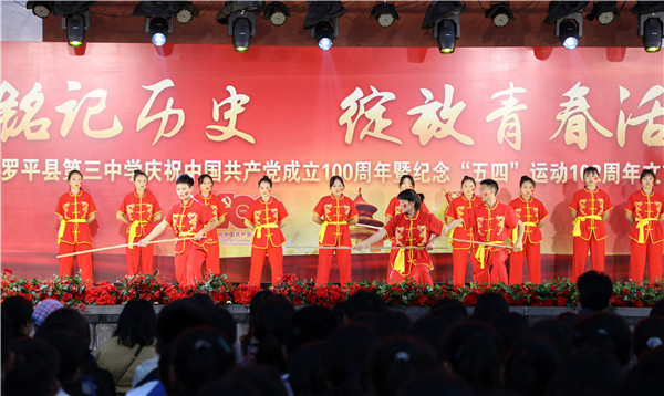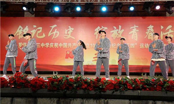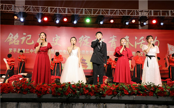 赓续五四薪火,献礼百年华诞。为庆祝建党100周年、纪念五四运动102周年,激发广大青少年的爱党之情、报国之志,5月8日晚,罗平县第三中学举办以“铭记历史,绽放青春活力”为主题的文艺汇演。