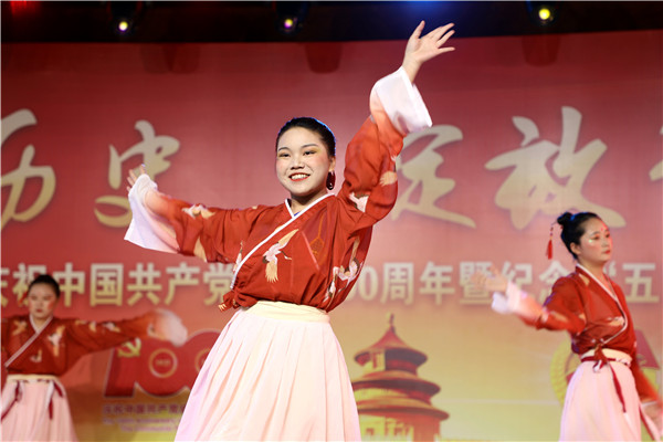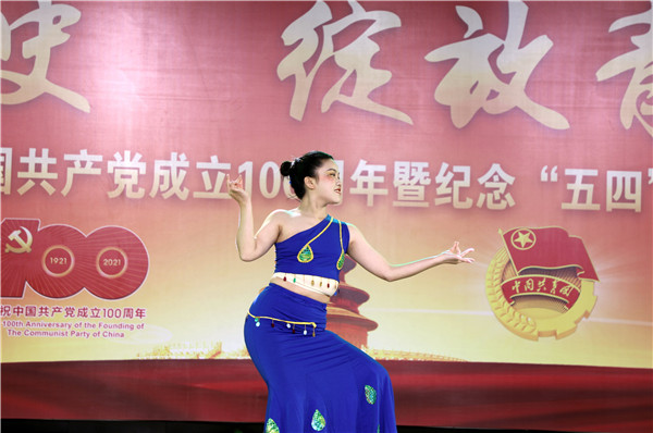 文艺汇演紧紧围绕庆祝中国共产党成立100周年,弘扬“五四”精神,传承红色基因,以朗诵、情景表演、合唱、舞蹈、汉服秀等艺术表现形式,精彩呈现了《少年中国说》《我们的五四》《我们都是追梦人》《心中有党照耀前行》《我爱你中国》等16个节目。