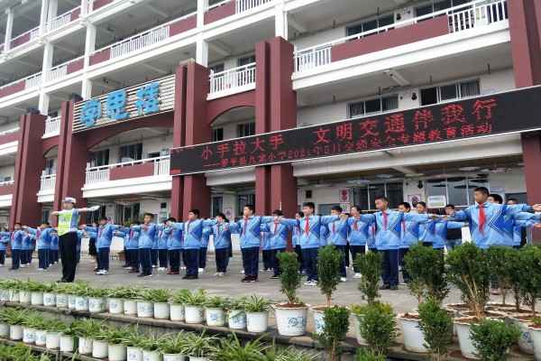 一直以来,学校立足自身实际,组织教师和家长志愿者成立了“护学岗”,在上学、放学等车辆较为集中的时段疏导拥堵车辆,及时排除隐患;同时,做好学生和家长的交通安全宣传教育工作,减少交通违法,全力了保障广大家长、学生的交通出行安全。