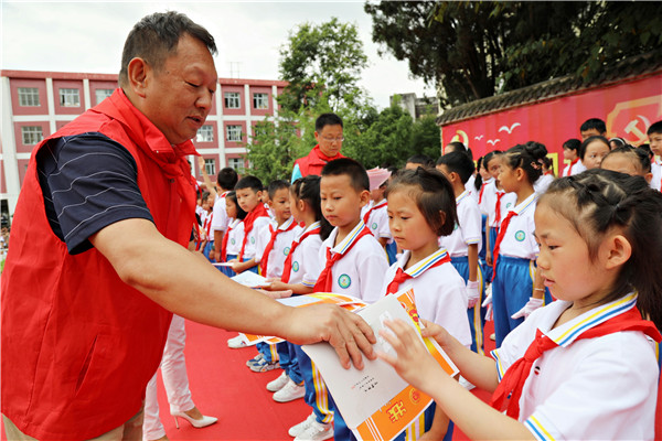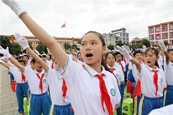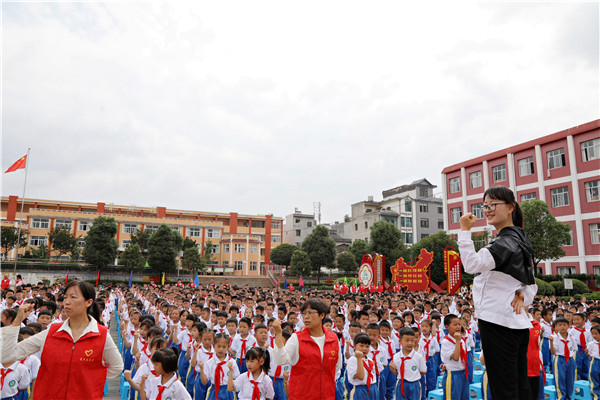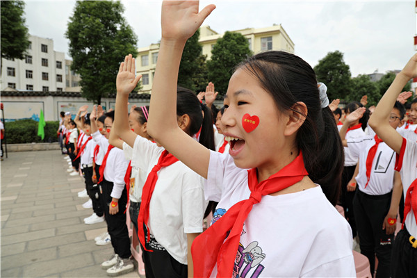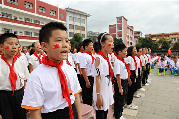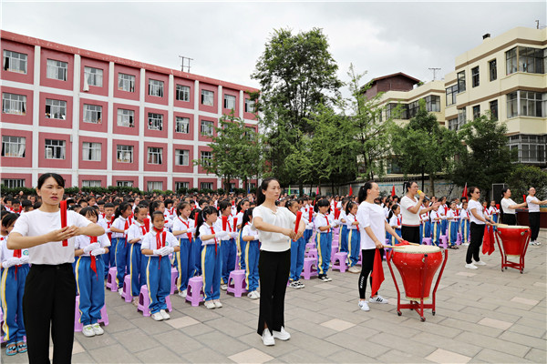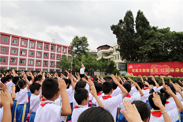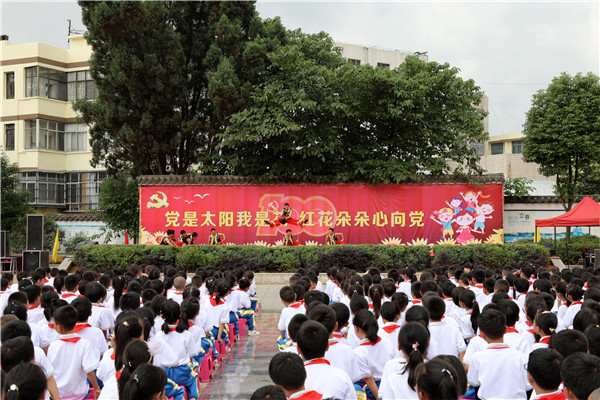 “今天距离7月1日还有30天,那是我们的中国共产党100岁生日,100年来,中国共产党给我们带来了美好、幸福、平安、祥和的生活,今天我们用拉歌、朗诵的方式,祝福我们伟大的中国共产党,祝福我们伟大的祖国……”6月1日,罗平县腊山街道新村小学举行“党是太阳我是花,红花朵朵心向党”六一儿童节庆祝活动。