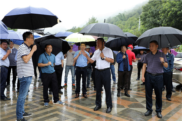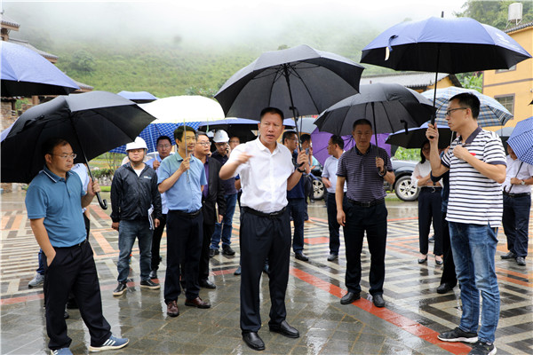 走进布依风情小镇建设施工现场,虽然下着雨,但各种建设项目正在紧锣密鼓地进行着。海建才、王玮边走边看边了解,仔细查看了小镇建设进度和质量,听取了相关负责人及项目设计方、施工方、管理方负责人情况汇报后,现场召开了布依风情小镇项目建设推进会,指导布依风情小镇建设工作。