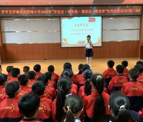 红色声音进校园。紧扣“学史明理、学史增信、学史崇德、学史力行”的总目标,开展形式多样、内容丰富的校园思政课。以国旗下的讲话、主题班会、主题(团)队日、校园文化活动等形式,说百年党史、诵红色经典、写红色文章、演红色节目、唱红色歌曲,党史学习在校园青少年中掀起高潮。据悉,以“感恩心向党永远跟党走” 、“童心颂英雄 少年承壮志”等主题演讲比赛20余场次13000余人参加。开展爱国诗歌朗诵会,共300余场次56000余人参与;培育小小宣讲员,引导青少年从“听众者”变为“主讲人”,从受教育者转变为党史的积极宣传者与自觉传承者。以“童心向党礼赞百年”为主题的六一文艺汇演,通过歌舞、小品、讲故事、朗诵、情景剧等形式,把新时代少年儿童的责任感、自豪感尽情地演绎与放歌,开展了230余场次65000余人,活动提升了学习效果,弘扬了爱国主义精神,激发了幼儿少年儿童爱党、爱国热情。