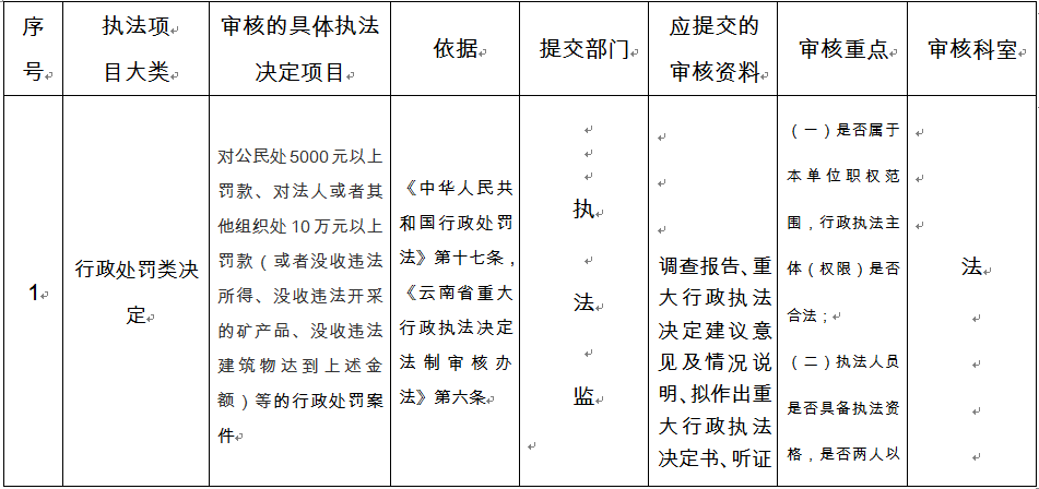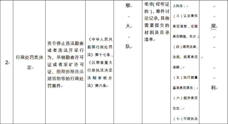 罗平县自然资源局重大行政执法决定法制审核目录清单