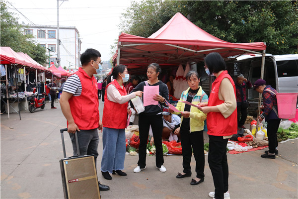 活动中,工作人员通过赶集日上街宣传、入户宣传和进商户宣传等方式,提醒广大人民群众非必要不外出、不聚集、戴口罩、勤洗手、多通风及时接种疫苗、注意咳嗽礼仪等等,动员行程码带星号人员积极开展核酸检测。同时提醒广大商家注意食品安全,规范引导顾客扫码、测体温、文明用餐。