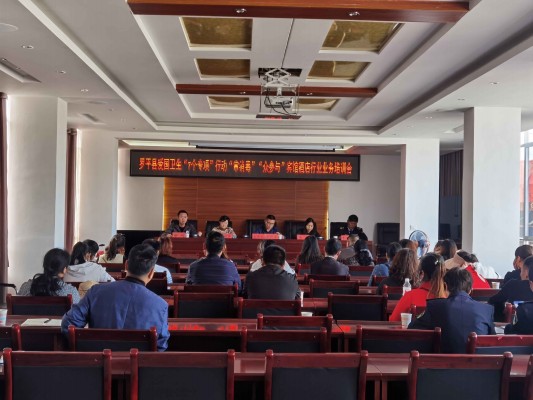 10月10日下午,罗平县卫生健康局组织召开罗平县爱国卫生“7个专项行动”住宿行业 “常消毒”“众参与”业务培训会,县卫生健康局分管领导、县工信商科局分管领导、县卫生和计生综合监督执法局分管领导参加会议。