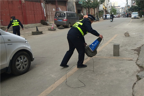 2020年1月8日,罗雄街道综合执法中队接到群众举报,说西关街公共停车位上有人摆放路锥阻止他人停车。