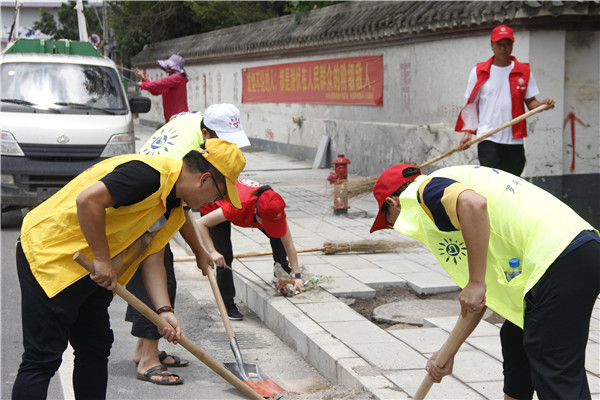 志愿者们有的拿起扫帚清扫路面,有的挥起铁锹清理积存垃圾,有的拖着高压水枪冲洗地上尘土,有的徒手上阵搬运堆放的杂物。遇到商户还不忘挨个宣传“门前五包”责任制,动员群众积极参与志愿活动,自觉维护门前卫生。