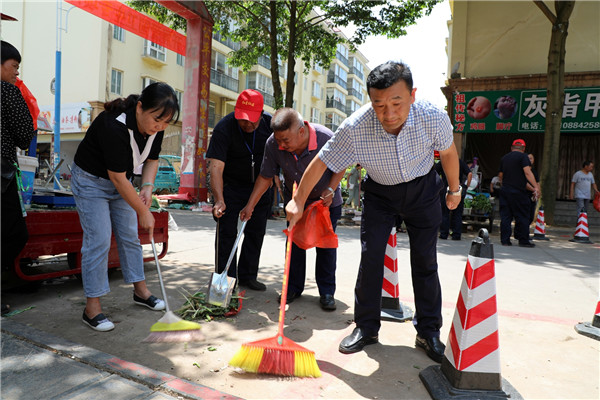 县领导高罗燕、金书芳、王冬梅、徐广满、周良珍及有关部门领导干部等参加大扫除活动。