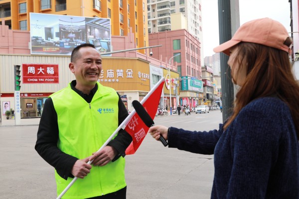 “当前,罗平县正在创健全国文明城市,我作为中国电信的一名职工,积极响应全县创文要求,自愿加入到交通劝导志愿者行列中来,为罗平创健全国文明城市贡献一份力量。”他告诉记者。