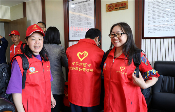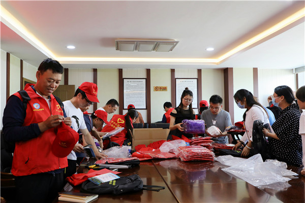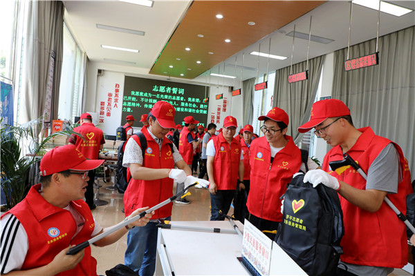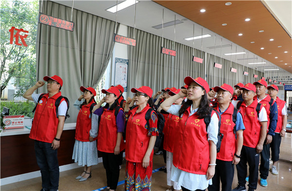 物资发放后,全体人员穿上志愿者服装,背上背包,带上工具集中在政务服务大厅进行志愿者宣誓,承诺“尽己所能,不计报酬,帮助他人,服务社会,践行志愿精神,传播先进文化,为建设和谐社会贡献力量。”