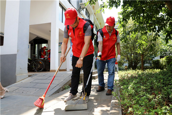 随后,大家带上清扫工具,在办公周边开展清扫活动。大家手持各种清洁工具,不畏脏、不嫌累,认真打扫环境卫生,清理绿化带内的杂草及垃圾等,践行“我为城市洗脸”活动。大家用实际行动参与创文工作,传递志愿服务、感染他人、奉献社会的正能量,为创文工作增添了力量,营造整洁、优美、文明、和谐的城市环境,也展现了政务服务人的责任与担当。