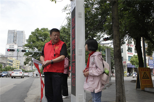 罗平县副县长李振林参加文明交通劝导志愿者服务活动