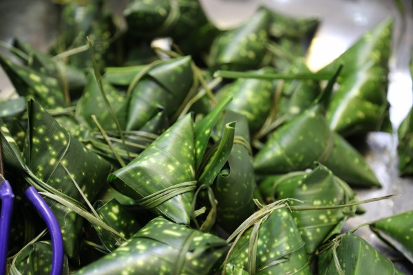 活动中,板桥镇干部职工在职工食堂着手包粽子,能手帮新手,大家边聊天边包粽子,各自聊起自己老家的端午习俗、学包粽子的趣事等,很快在一双双巧手下,一个个香咸可口的灰粽就装满了箩筐,粽香飘洒在活动现场,其乐融融。
