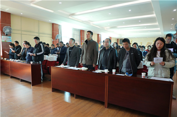 第三个环节是诵读经典。全体人员在主持人的带领下一起诵读经典“先天下之忧而忧,后天下之乐而乐。”、“鞠躬尽瘁,死而后已。” 励勉大家把国家、民族的利益摆在首位,为祖国的前途、命运担忧分愁,为天底下的人民幸福出力;劝戒大家为一项事业兢兢业业,为一种理想夙夜在公,为一份信念投入一生。