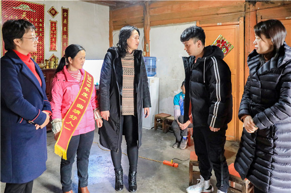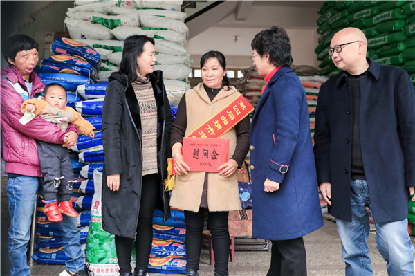 冬日的早晨刚下过雨,黄海鸥带领慰问组来到了长底乡集镇赖选粉的化肥店铺里。结婚多年来,赖选粉任劳任怨,在家操持家务,抚养好孩子,照顾好患有高血压、脑梗塞等病症且丧失劳动能力的公公和患风湿病10余年的婆婆。在平凡而又平淡的生活中,她用真爱抚养孩子成长,用真心孝顺公婆,用感恩的心回报亲人,让尊老爱幼的传统美德成为一盏不灭的长明灯,被评为第四届曲靖市道德模范。见到赖选粉时,她正在店里忙碌着,一脸和善的笑容。黄海鸥为她送上了慰问金和新春的祝福,叮嘱她要保重身体,一如既往地传承好尊老孝亲传统美德。