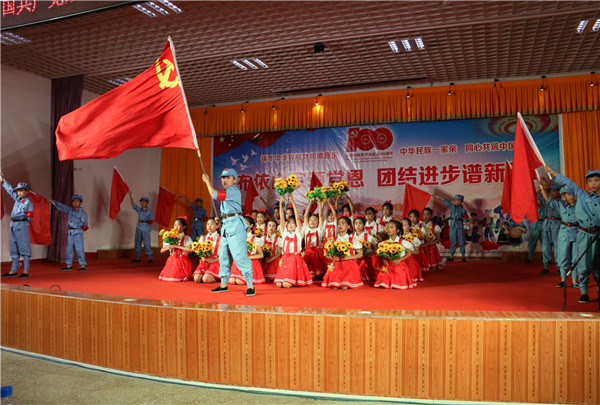“我志愿加入中国共产党,拥护党的纲领,遵守党的章程,履行党员义务,执行党的决定,严守党的纪律,保守党的秘密……”晚会在合唱《我宣誓》中拉开序幕。舞蹈《歌唱祖国》,合唱《我的中国心》表达了人民对祖国的热爱和对祖国美好未来的祝愿;舞蹈《洗衣歌》歌颂了革命时期人民群众铁心跟党走,军民水乳交融的深厚情谊;合唱《没有共产党就没有新中国》《我们走在大道上》,诗歌朗诵《红色七月》《中国共产党百年华诞》深情讴歌了中国共产党带领人民一步一个脚印,从站起来到富起来再到强起来的壮美画卷;独唱《红星照我去战斗》重现了革命后代如雄鹰傲搏风雨、展翅高飞、勇挑重担、一往无前的成长经历。体操表演《布依工间操》、布依舞蹈《山歌葫芦舞》《布依把式舞》展现了在党的带领下,各族人民群众心连心,共同谱写着中华民族一家亲、同心共筑中国梦的辉煌乐章。