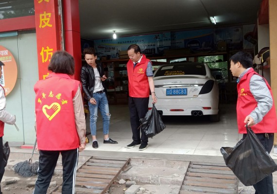 志愿者身穿红色志愿服,带着清洁工具,对罗黄路沿路上的人行道、下水口、下水道上的白色垃圾、烟头、建筑垃圾及沿街居民产生的厨余垃圾进行清理,并在清理过程中对垃圾较多的门户进行交谈,广泛宣传,劝说尽量减少“乱扔垃圾”现象,及时清扫自家门口垃圾,并把家门口垃圾桶的垃圾进行清理,避免风吹遍地是垃圾的情况。