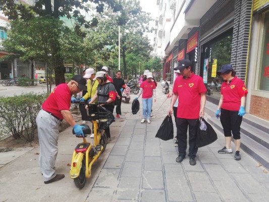 活动中,志愿者们头顶烈日,分布在主次街道,拣拾道路上的烟头和垃圾,劝导商铺门店搞好门前环境卫生,指挥或亲自动手把一辆辆无序停放的摩托车、自行车有序放置。
