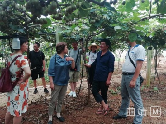 近期,曲靖市专家服务团助力脱贫攻坚第三团深入罗平县腊山街道坡依村委会马鞍山村猕猴桃种植基地,指导猕猴桃夏季管理。