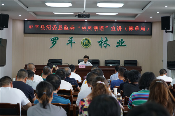 在建党99周年到来之际,罗平县林业和草原局为进一步提高全体干部职工思想道德修养,强化拒腐防变和廉洁从业意识,6月30日下午,县林草局邀请罗平县纪委监委在林草局开展“清风话语”宣讲活动,全局及下属单位全体干部职工130余人参加了宣讲活动。