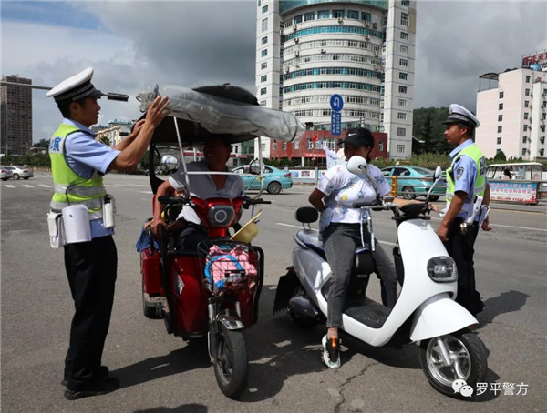为进一步增强摩托车和电动自行车骑乘人员交通安全意识,提高路面安全头盔佩戴率,减少电动自行车、摩托车各类交通违法,预防和控制两车被盗案件发生,8月3日至5日,罗平县公安局交警大队联合城市综合管理局,在全县范围内开展摩托车、电动车违法专项整治行动。
