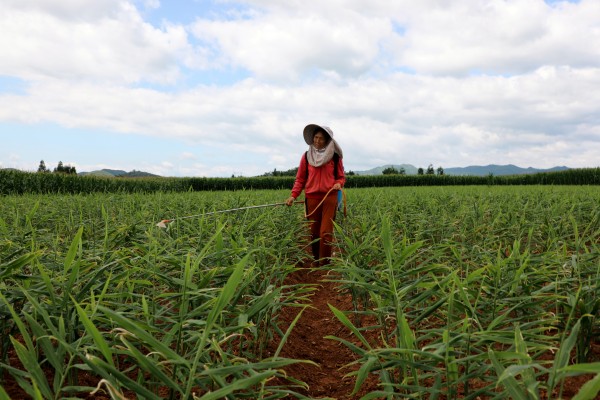 时下,天气炎热、雨水充沛,正是罗平小黄姜生长的关键时期,广大姜农正在积极抢抓时节,利用有利天气做好除草、施肥、病虫害防治等中耕管理工作,确保今年种植的小黄姜能稳产增收。