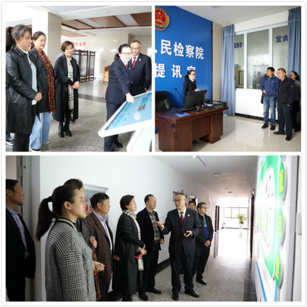 随后参会人员实地参观了12309检察服务大厅、远程提讯室、杜鹃花工作室、党员活动室、党建文化长廊。