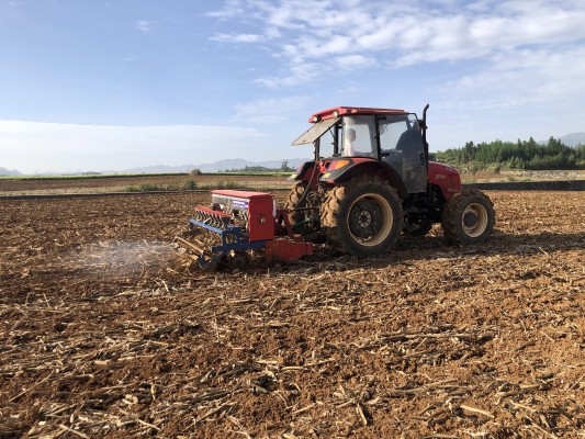 三是集成一套农机农艺配套措施。样板于10月15-16日统一进行机耕;10月25日实行机械化一次性种、肥同播,同步除草剂封闭除草;11月5日使用无人植保机,统一进行小苗期虫害防控,成熟时采用“二段式”机械化收获。